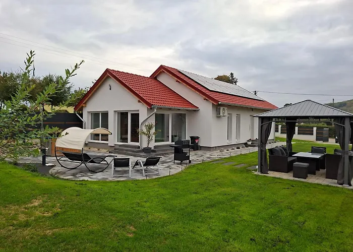 Napsugar Wellness Apartman Ujudvar villa is nestled within 10 minutes' drive of Koszikla Szurdok and provides a hot tub and a sauna. Featuring a patio, this Ujudvar holiday home is situated 4.6 km from the Volgyerdo Nonprofit Kft forest.